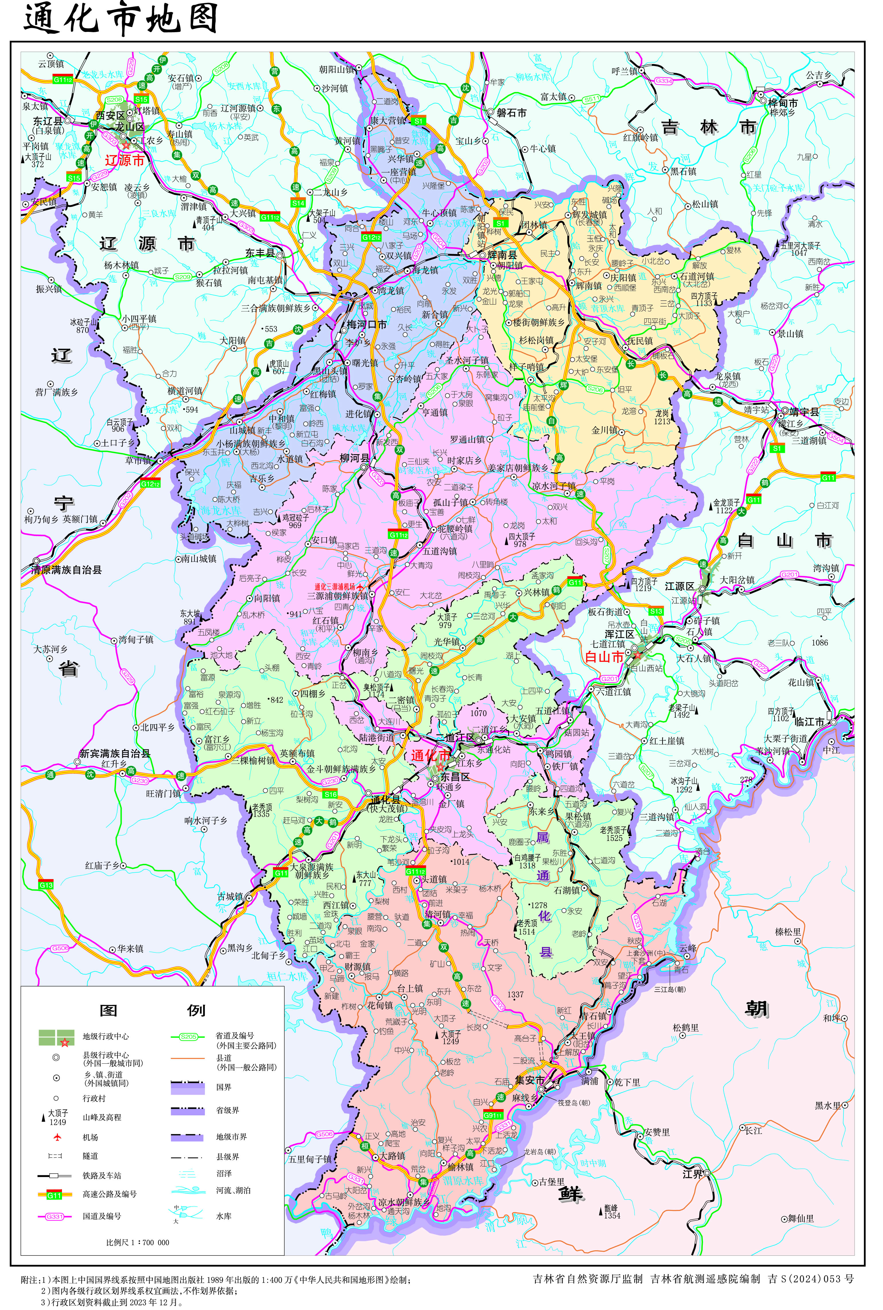 通化市轄2個(gè)市轄區(qū)、3個(gè)縣,代管2個(gè)縣級(jí)市: