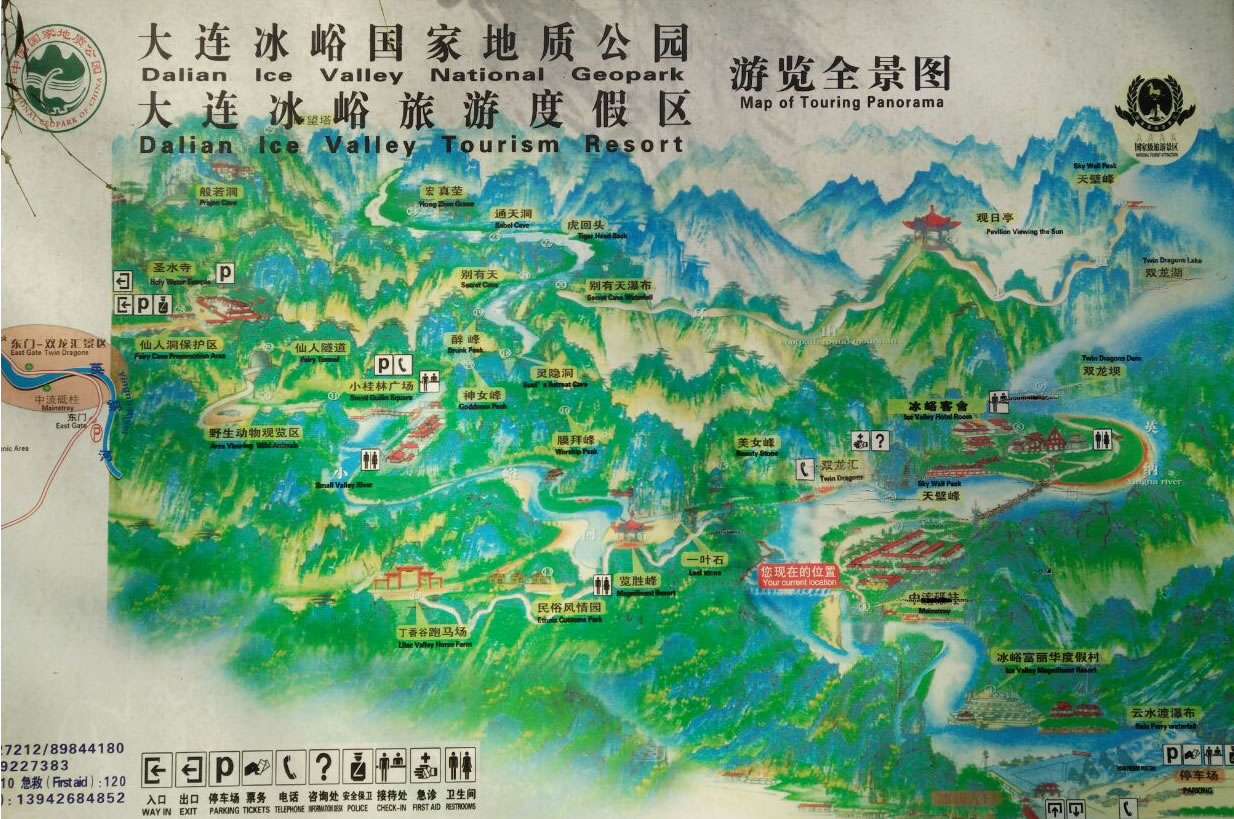 冰峪溝風景區(qū)位于莊河市北部山區(qū)仙人洞鎮(zhèn)境內(nèi),距大連市內(nèi)有240公里。景區(qū)規(guī)劃面積約有110平方公里,景區(qū)面積約47平方公里。龍華、攔馬、莢蓉三山屏蔽,英納、小峪兩河盤繞。這里林木參天,山清水秀,宛如江南風景,素有“遼南小桂林”之美稱。冰峪溝的風景既不同于桂林山水,又不同于黃山云海,以其獨特的風格和韻味呈現(xiàn) 在東北遼南的一隅。