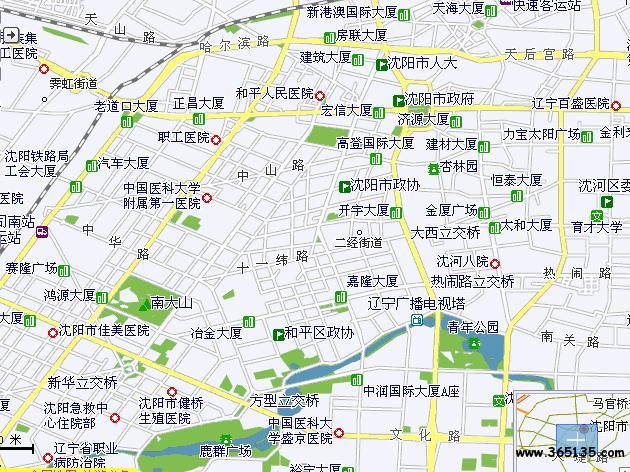 和平區(qū)位于沈陽(yáng)市的中心區(qū)域,東以青年大街、三經(jīng)街與沈河區(qū)交界;西以沈大線鐵路與鐵西區(qū)交界;北以沈山線鐵路與皇姑區(qū)交界;南跨渾河與東陵區(qū)渾河站鄉(xiāng)相連.高樓林立的文化路、中華路橫穿全區(qū);綠樹(shù)成蔭的和平大街、勝利大街縱貫?zāi)媳;一座座立交橋如蝴蝶展翅,通過(guò)大二環(huán)與周?chē)咚俟窐?gòu)成四通八達(dá)的交通網(wǎng)。
