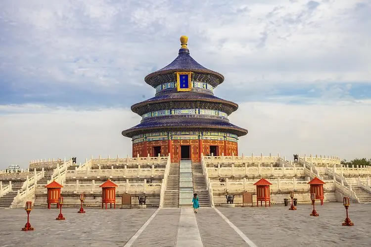 - 特色:天壇的標(biāo)志性建筑,三重檐圓殿,藍色琉璃瓦象征藍天,殿內(nèi)無大梁長檁,僅靠28根楠木巨柱支撐。