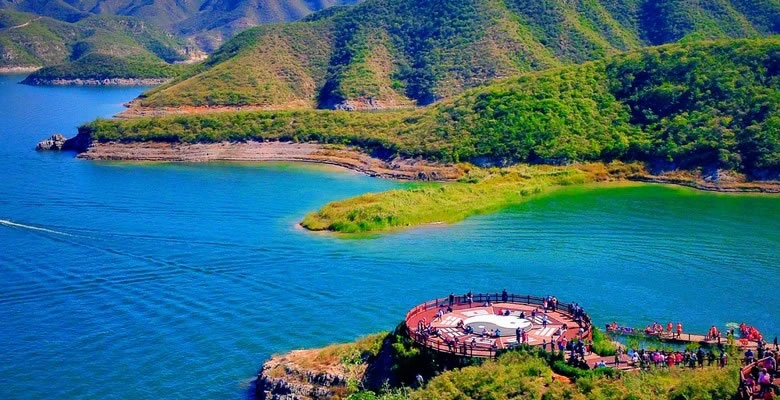 易水湖,原名安格莊水庫,位于河北省保定市易縣縣城西南25千米處,距北京150千米,距雄安新區(qū)80千米,易水湖南側(cè)與狼牙山相連,北側(cè)是紫荊關(guān),西側(cè)是五峰寨,東側(cè)是九龍山,被稱為“北方小桂林”。易水湖是20世紀(jì)50年代利用四周高聳的山勢而修建的一座人工湖。易水湖水域面積約27平方千米,容量為3.9億立方米,最深處達(dá)48.5米。易水湖屬海河流域,大清河水系。易水湖依托山水自然資源和易文化,開發(fā)為度假區(qū),已建有易水文化休閑度假小鎮(zhèn)、養(yǎng)生島康養(yǎng)小鎮(zhèn)、老子峰3100米臨水棧道、高端度假湖景酒店、易水山谷、水上運(yùn)動等業(yè)態(tài)項(xiàng)目。