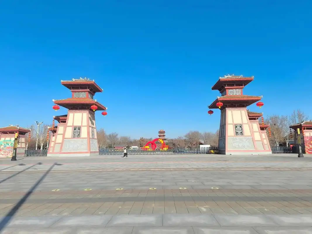 - 軒轅閣:園區(qū)地標(biāo),高38米,仿春秋戰(zhàn)國(guó)時(shí)期建筑,登頂可俯瞰全園。