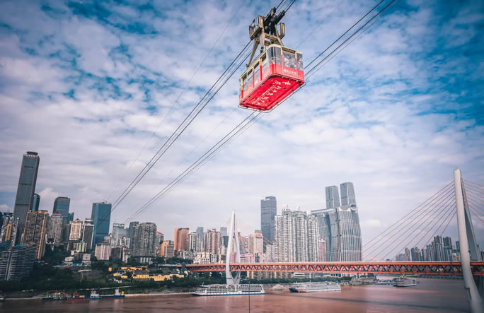 • 特色:跨越長江的空中客車,全程約4-5分鐘,可俯瞰渝中半島、南岸區(qū)風光及兩江交匯景觀。