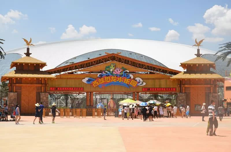 西部恐龍水樂園位于蘭州新區(qū)鳳凰山路1555號(hào),總建設(shè)用地約2200畝,包含室內(nèi)外兩大水樂園區(qū)域。室內(nèi)水樂園采用28℃恒溫系統(tǒng)實(shí)現(xiàn)全年運(yùn)營,配備歡樂島、加勒比海灘等17項(xiàng)國際化游樂設(shè)施;室外區(qū)域設(shè)有造浪池、叢林旋渦等12組水上游樂設(shè)備。園區(qū)以恐龍為主題,布置仿真模型及恐龍化石展品,兼具科普教育與娛樂功能。