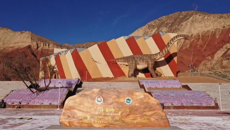 - 核心特色:以白堊紀(jì)恐龍足印群為核心,揭露面積2800平方米,含11類150組1831個(gè)足跡,最大蜥腳類足印長(zhǎng)150厘米、寬120厘米,步幅375厘米,創(chuàng)世界之最。配套恐龍臥跡、尾部拖痕、糞跡化石及蘭州龍、劉家峽黃河巨龍等骨骼化石,地質(zhì)博物館、5D影院、游步道等設(shè)施完善,兼具科研、科普與旅游價(jià)值。