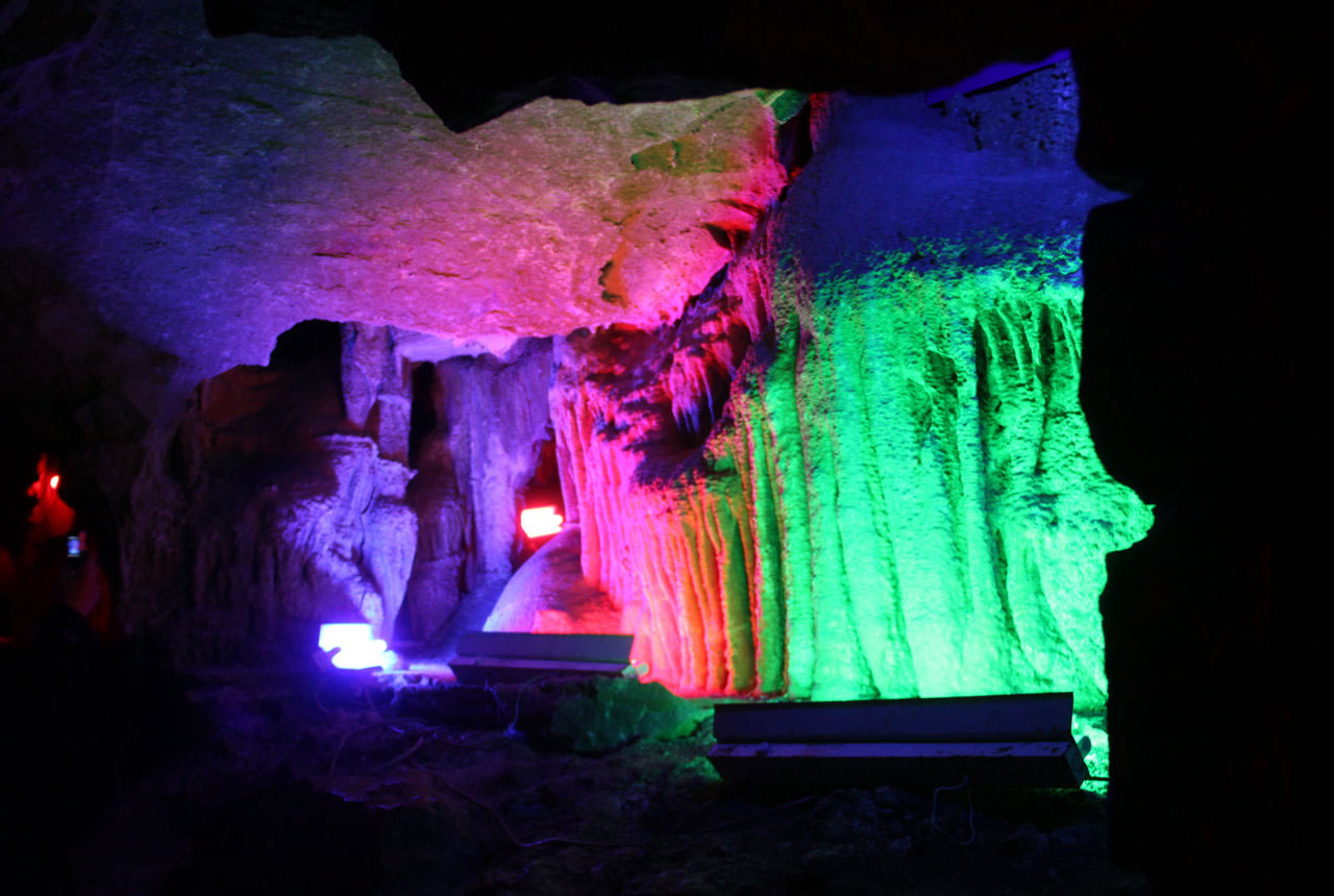 - 石鐘乳群:洞頂垂掛的鐘乳石與地面石筍形成“天地對望”景觀,燈光映射下如夢似幻。