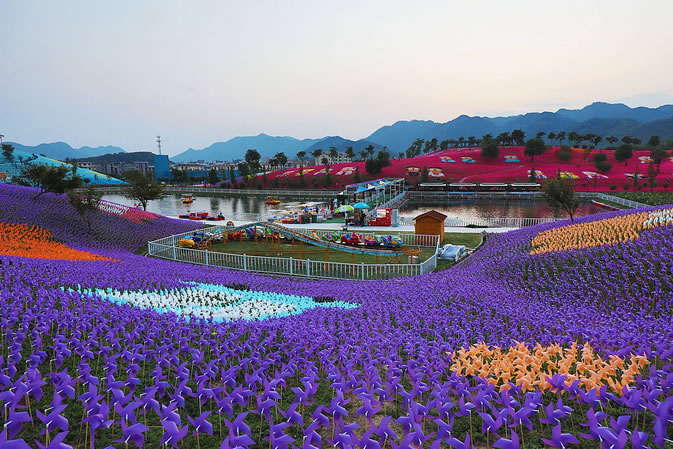 1. 薰衣草花海:400畝梯田式種植,5-6月、9-10月為盛花期,紫色花海與格;、粉黛草交織,形成“紫色地毯”景觀,適合航拍及婚紗攝影。