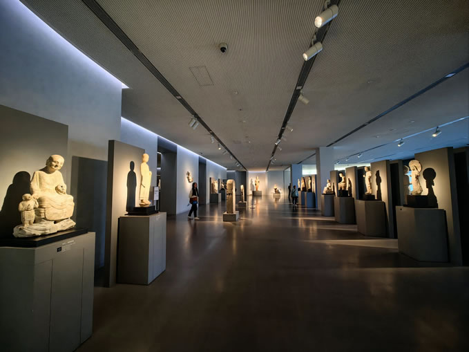 - 核心特色:融合佛教造像、玉器、陶俑、青花瓷等多品類(lèi)文物,以“料、工、形、紋”古器物學(xué)研究為脈絡(luò),建筑本身即藝術(shù)——玻璃帷幕在夜間化身深邃藍(lán)盒,旋梯貫穿全館,光影隨樓層遞增由暗轉(zhuǎn)明,象征對(duì)光明與希望的追逐。