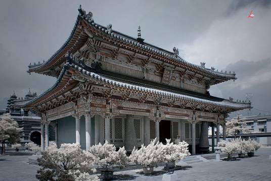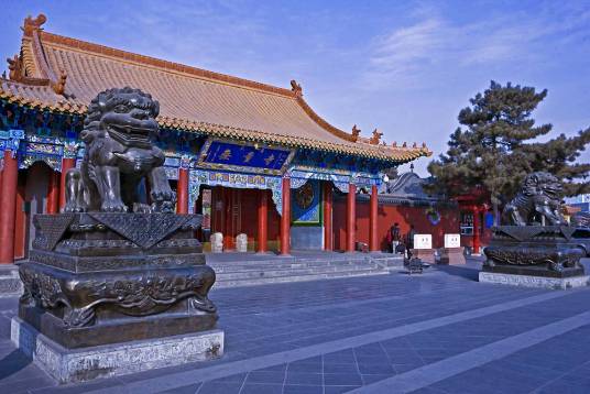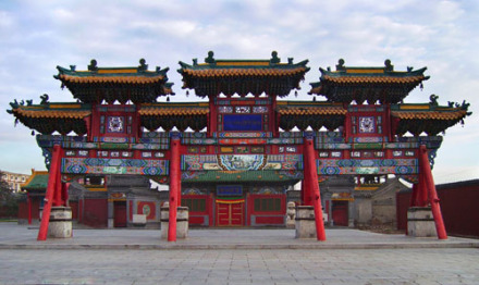 大召,明代稱“弘慈寺”,歷史上又有“銀佛寺”“大乘法輪召”“甘珠爾廟”“帝廟”等多種稱謂。大召,是一座大藏傳佛教寺院,是呼和浩特最早建成的黃教寺院,也是蒙古地區(qū)僅晚于美岱召的蒙古人皈依黃教初期所建的大型寺院之一,屬于格魯派(黃教)。占地面積約3萬平方米,其中建筑面積為8000多平方米。大召寺院座北向南,總體布局是伽藍七堂形制,由正院、東倉和西倉三大院落單位成,東西兩倉各有倉門,北端互通構(gòu)成環(huán)繞寺廟的甬道。主軸線上由山門、天王殿、菩提過殿、大雄寶殿和九間樓組成。大召的藏品豐富,堪稱大召“三絕”的銀佛、龍雕、壁畫佛殿內(nèi)的各種彩塑、金銅造像、晾佛節(jié)展開的巨幅唐卡、108部的甘珠爾經(jīng)卷,以及宗教活動使用的各種法器,面具等都是較珍貴的歷史文物和藝術(shù)珍品。