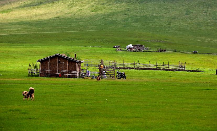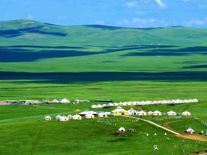 夏天這里空氣清新,氣溫涼爽,是避暑度假的勝地。 一場細雨過后,一覽草原風(fēng)光。美麗的大草原一眼望不到邊,藍天白云、碧草綠浪、湖水漣漪、牛羊成群、點點氈房、裊裊炊煙,整個草原清新寧靜。茫茫無際的牧場,傳來悠揚的牧歌,一條彎彎的小河,靜靜地流向遠方。白色的羊群在山坡上吃草。遠遠望去,好像是白云飄浮在山間,又好似粒粒珍珠撒落在草原上!∥L(fēng)吹過,草浪滾滾,形成了一片綠色的海洋。牧羊的姑娘,唱著動聽的情歌,揮動著羊鞭,游走在美麗的草原上。傍晚,夕陽西下的時候,在霞光的輝映下,草原與天連成一片。蒙古包里響起了委婉動聽的馬頭琴聲,這動與靜相結(jié)合的草原美景,怎不叫人心曠神怡。