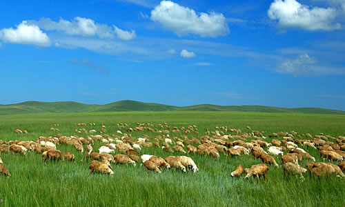 草原氣候區(qū),從東端呼倫貝爾草原至陰山河套平原一帶,冬季冰天雪地,歷達半年之久,平均氣溫為攝氏零下28°c左右。夏、春、秋幾乎相連,五月至九月氣候溫和,是旅游草原最佳季節(jié)。