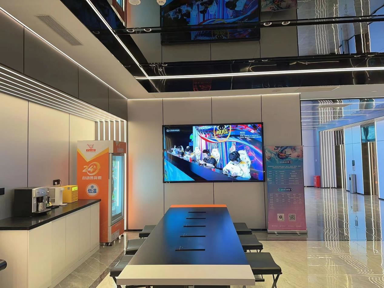 為提高玩家觀看比賽的趣味性,營造賽事討論的刺激氛圍,滿足玩家社交娛樂需求,門店特意在酒店大廳放置100寸屏電視,中庭上方設(shè)計200寸大投影屏,身處房間即可觀賽,音頻直連房間內(nèi)音響,無論你是在房間還是大廳,都能享受大屏看比賽的快樂!