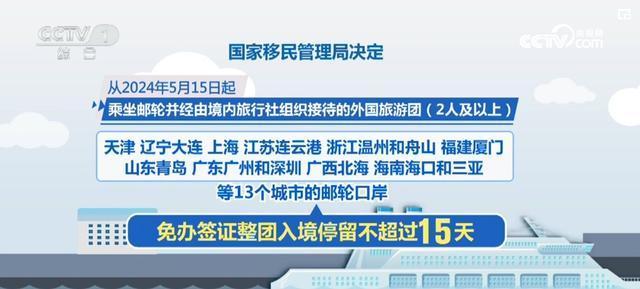 2024年5月15日起,乘坐郵輪并經(jīng)由境內(nèi)旅行社組織接待的外國旅游團(tuán)(2人及以上),可從天津、遼寧大連、上海、江蘇連云港、浙江溫州和舟山、福建廈門、山東青島、廣東廣州和深圳、廣西北海、海南?诤腿齺喌13個(gè)城市的郵輪口岸免辦簽證整團(tuán)入境停留不超過15天。旅游團(tuán)須隨同一郵輪前往下一港,直至本次郵輪出境,活動范圍為沿海省(自治區(qū)、直轄市)和北京市! ∴]輪旅客“靠港即下、好來快走”