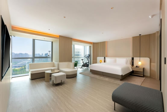 酒店所有的客房均配有健身器材及榮獲紅點設計大獎的香薰睡眠燈,同時配備的華為客控系統(tǒng)全方位提升智能化服務體驗,也是華為客控系統(tǒng)應用到酒店行業(yè)的全球首次嘗試。整個客房輕松自然的設計、親膚舒適的寢具及多感官的助眠體驗,從視覺、聽覺等多方面為你營造一個良好的舒睡環(huán)境,緩解旅途壓力。