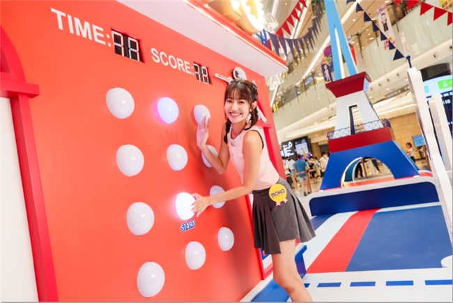 4.7米高的紅磨坊那極具標志性的紅色配上璀璨金色亮燈MOKO字樣,非常的搶眼。紅磨坊前設(shè)置擊劍場,由“無敵劍神”及“世一劍后”坐陣,邀請游客參與這場反應與速度的挑戰(zhàn),游戲限時30秒,隨著墻上拍拍燈隨機亮起,每按下一盞亮燈即可得分,讓游客在充滿歡樂的挑戰(zhàn)中,看看自己是否有成為新一代劍神劍后的實力。