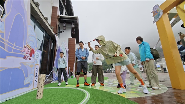 線下,黃山風(fēng)景區(qū)設(shè)置了多個充滿趣味的 IP 打卡點(diǎn),吸引了來自世界各地的游客紛至沓來。打卡點(diǎn)處不僅有填詩、投壺等豐富多樣的傳統(tǒng)游戲,讓游客們在游玩中感受中國傳統(tǒng)文化的魅力。參與#跟著一禪詩游黃山 話題互動的游客,還能夠領(lǐng)取精美的聯(lián)名明信片,參與集章活動。此外,豐富的抽獎活動更是為游客增添了不少驚喜,現(xiàn)場氣氛熱鬧非凡,歡笑聲、贊嘆聲不絕于耳。