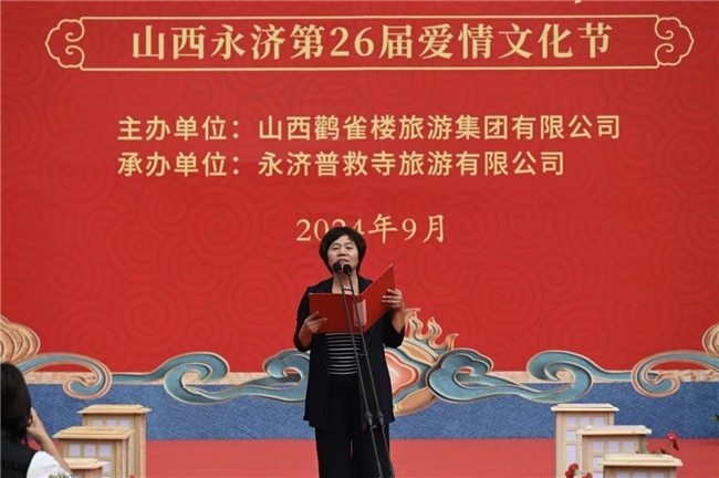 9月 21 日,普救寺迎來(lái)了第 26 屆愛(ài)情文化節(jié)的盛大開(kāi)幕式。開(kāi)場(chǎng)節(jié)目《蒲州花傘》瞬間將人們帶入了濃郁的地域風(fēng)情之中。隨后,主持人隆重介紹到場(chǎng)領(lǐng)導(dǎo)嘉賓。永濟(jì)市政府黨組成員崔子龍發(fā)表了誠(chéng)摯而熱情的致辭,表達(dá)了對(duì)愛(ài)情文化節(jié)的美好祝愿和對(duì)永濟(jì)文化旅游事業(yè)的殷切期望。市委宣傳部部長(zhǎng)李朝霞宣布開(kāi)幕,正式拉開(kāi)了本次愛(ài)情文化節(jié)的精彩帷幕。