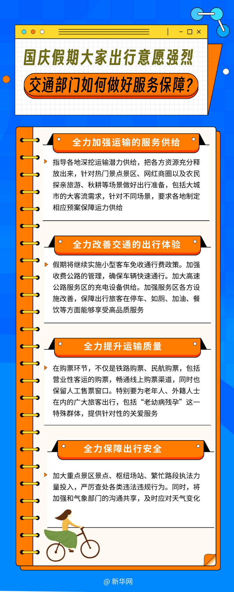 “十一”假期明天就將開啟。交通運(yùn)輸部預(yù)測(cè),假期全社會(huì)跨區(qū)域人員流動(dòng)量將達(dá)到19.4億人次,平均每天2.77億人次。強(qiáng)烈的出行意愿?jìng)鬟f出流動(dòng)的中國(guó)活力。假期出行將會(huì)呈現(xiàn)出哪些顯著特點(diǎn)、主要的熱門目的地有哪些、交通部門如何做好服務(wù)和安全保障工作?