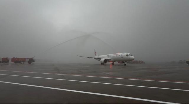 3日上午10時(shí)58分,由國產(chǎn)大飛機(jī)C919執(zhí)飛的MU5421“上海虹橋—重慶”航班,搭載159名旅客順利飛抵重慶江北國際機(jī)場(chǎng),標(biāo)志著國產(chǎn)大飛機(jī)C919在重慶的首個(gè)商業(yè)航班正式開通。現(xiàn)場(chǎng)舉行了民航最高禮儀“過水門”儀式。