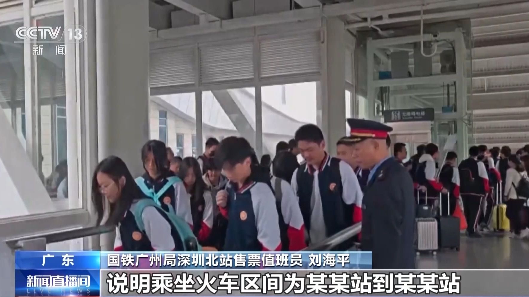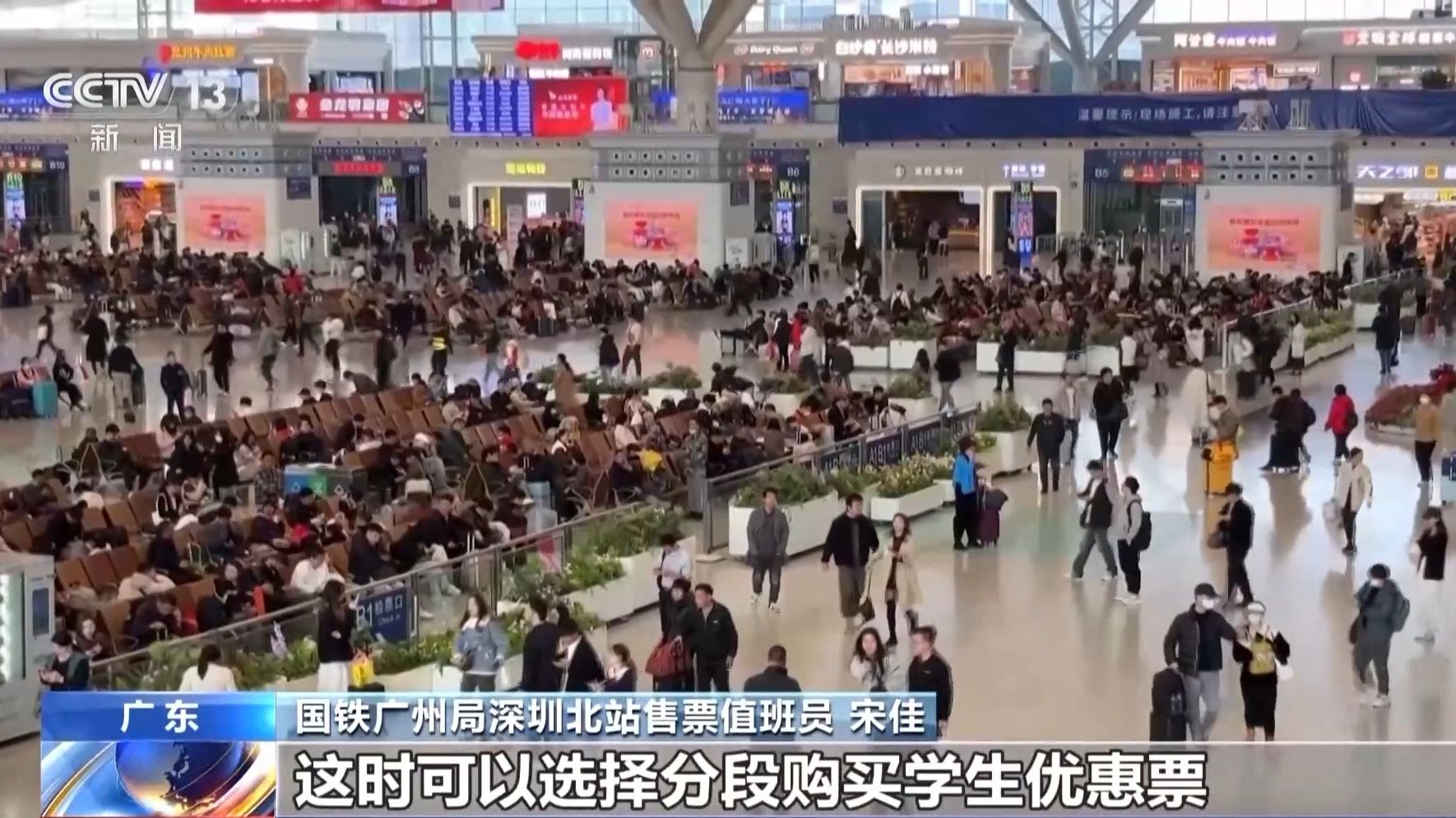 國鐵廣州局深圳北站售票值班員 劉海平:已滿14周歲的中學生需要購買學生票返鄉(xiāng),需要學校開具學籍證明,注明家庭地址,說明乘坐火車區(qū)間為某某站到某某站,加蓋學校公章,但是要去車站人工窗口辦理。(來源:央視新聞)