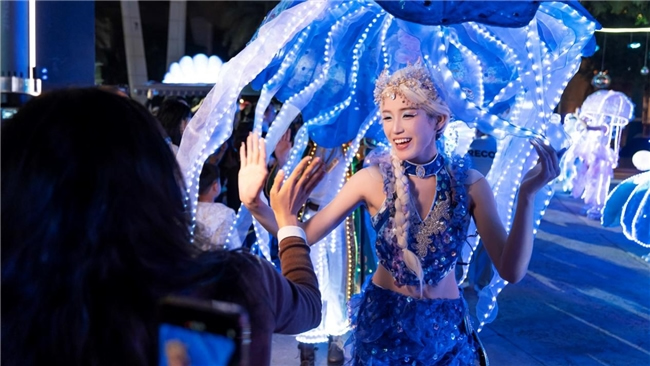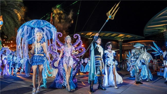 在本次活動(dòng)中,特別設(shè)置的NPC(非玩家角色)演藝巡游活動(dòng)成為一大亮點(diǎn)。亞特蘭蒂斯原創(chuàng)NPC“海洋七子”驚艷出場,包括擁有無限力量、守護(hù)光明正義的阿特拉斯王子,用優(yōu)雅的歌聲喚醒深海綺夢的人魚星娜,預(yù)言洞悉萬物、感知生命力量的章魚菲婭,智慧引領(lǐng)科技、把握未來方向的海龜拉斐爾,勇敢成為利刃、開啟榮耀之路的鯊魚坦克,在美麗的星光下閃耀夢幻光芒的水母歐若拉,以及愛能穿梭角落、點(diǎn)亮浩瀚海洋的海馬維納斯。演員們身著奇幻服飾,化身這些海洋生物形象,在園區(qū)內(nèi)巡游展演,與游客近距離互動(dòng),創(chuàng)造了難忘的度假記憶。