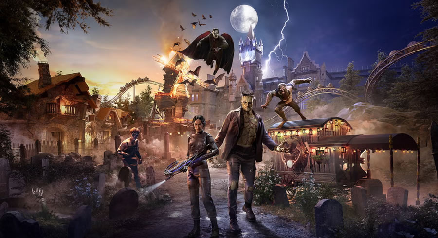 另一個(gè)園區(qū)黑暗宇宙(Dark Universe)則致敬環(huán)球經(jīng)典怪物電影,暗黑美學(xué)貫穿始終。標(biāo)志性設(shè)施 “德古拉的詛咒:自由墜落(Dracula’s Curse: Freefall Tower)” 結(jié)合全息投影與百米極速墜落,游客在驚悚劇情中與吸血鬼纏斗; “科學(xué)怪人:命運(yùn)實(shí)驗(yàn)室(Frankenstein’s Fate Lab)” 則為多結(jié)局互動(dòng)劇場(chǎng),觀眾通過(guò)手機(jī)APP投票決定人造人的善惡,觸發(fā)不同逃生路線(xiàn)。