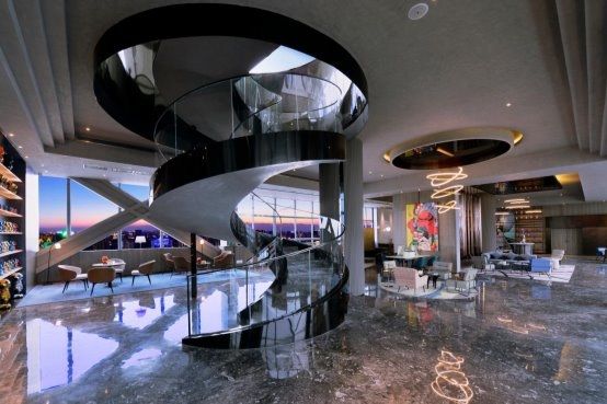 高空視野:31樓全透明云端餐廳可俯瞰人民南路車水馬龍,180°落地窗將城市天際線化為流動畫卷;旋轉樓梯以光影裝置串聯(lián)空間敘事,每一步皆成風景。