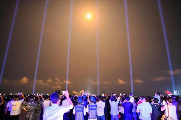“5,4,3,2,1”——火箭的火焰照亮夜幕,平臺(tái)的光束射向天際……19時(shí)50分,火箭發(fā)射升空,游客們舉著手機(jī)記錄,現(xiàn)場(chǎng)歡呼聲陣陣。“很興奮、很震撼,感覺一伸手就能‘抓’到火箭。”延鈺菲說。