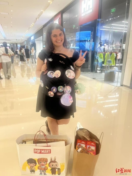 同樣來(lái)成都玩的,還有27歲的意大利女孩瑪?shù)倌龋∕artina)。6月25日下午,瑪?shù)倌日诔啥嫉囊患遗菖莠斕氐赀x購(gòu)?吹搅宅槤M目的潮流玩具,瑪?shù)倌纫贿M(jìn)去就是半小時(shí)以上,足足選了一大袋才出來(lái),“在意大利,泡泡瑪特的店鋪不多,商品品種也沒(méi)有這么齊全。”