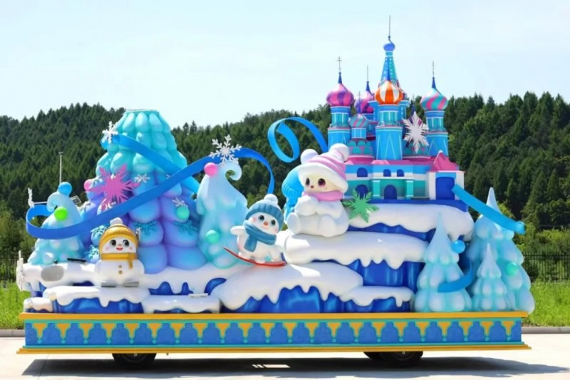 “冰雪綺夢花車”,巧妙融合了伊春作為“紅松故鄉(xiāng)”的生態(tài)特色與對俄開放的地緣優(yōu)勢。銀裝素裹的紅松林展現(xiàn)北國冰雪魅力,俄羅斯城堡造型呼應(yīng)伊春作為中俄邊境城市的開放姿態(tài)。雪人點綴其間營造歡樂氛圍,底部藍色水系裝飾象征黑龍江流域的聯(lián)通作用;ㄜ囃ㄟ^冰雪童話場景,既展示了伊春冬季旅游的獨特吸引力,更傳遞出“以冰雪為媒,促開放合作”的發(fā)展理念,生動詮釋了伊春立足生態(tài)優(yōu)勢、深化對外合作、推動高質(zhì)量發(fā)展的戰(zhàn)略方向,誠邀八方賓客共赴冰雪之約、共享開放機遇。