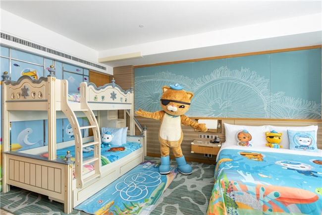 新推出的“海底小縱隊主題房”,以熱門動畫片《海底小縱隊》為藍(lán)本,結(jié)合動畫人物IP形象及海洋元素,設(shè)計了多種房型,為親子家庭打造了一個充滿童趣與探險氛圍的親子空間。