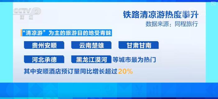 旅游平臺數(shù)據顯示,“清涼游”為主的旅游目的地受青睞。貴州安順、云南楚雄、甘肅甘南、河北承德、黑龍江漠河等城市最為熱門,其中安順酒店預訂量同比增長超過20%。