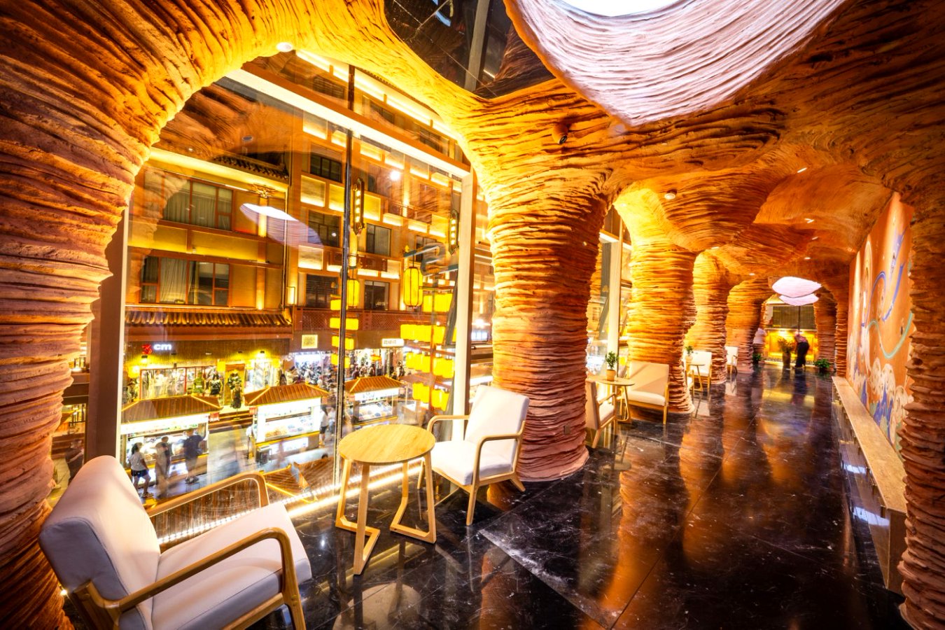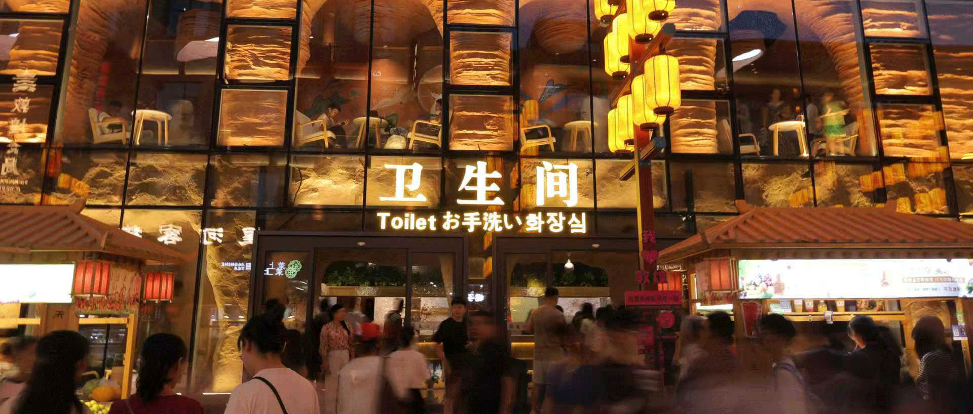 據(jù)了解,該項目對敦煌夜市“八景樓”進行功能再造,融合敦煌文化基因:一層以“莫高至善”為主題,二層則呈現(xiàn)“雅丹秘境”,營造雄渾奇幻的空間意境。步入其中,便能感受到敦煌文化與九牧衛(wèi)浴產(chǎn)品的完美交融,一位來自北京的游客表示:“這和我印象中的公廁完全不一樣,升級后的超白玻幕墻與毗鄰的沙州樓形成震撼的 ‘古今對話’,夜幕降臨時,燈光與幕墻交相輝映,宛如一座小型藝術(shù)館。”
