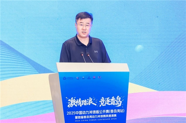發(fā)布會上,萊陽市人民政府副市長李誠首先發(fā)表致辭,對蒞臨現(xiàn)場的各位領導、嘉賓及媒體朋友表達了誠摯的歡迎與感謝。他強調(diào),動力沖浪板運動作為時尚、刺激與科技完美融合的新興水上項目,近年來在全球范圍內(nèi)迅速崛起,深受廣大青年及戶外運動愛好者的青睞。中國動力沖浪板公開賽作為國內(nèi)頂級賽事,歷經(jīng)多屆積淀,已擁有深厚的辦賽底蘊與廣泛的社會影響力。香島灣站的設立及首屆香島灣動力沖浪精英邀請賽的創(chuàng)辦,旨在積極響應國家全民健身戰(zhàn)略,推動水上運動的普及與提升,深化體育與旅游的融合發(fā)展,進一步彰顯香島灣地區(qū)的魅力與知名度。