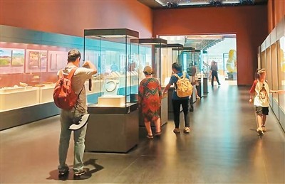如今,走在牛河梁遺址博物館中,虛擬現(xiàn)實(shí)等多種新技術(shù)豐富著參觀體驗(yàn),游客仿佛穿越時(shí)空,置身于紅山文化的歷史場(chǎng)景中。牛河梁國(guó)家考古遺址公園相關(guān)負(fù)責(zé)人介紹:“這里是研學(xué)旅游的重要目的地。我們將不斷豐富表現(xiàn)形式,策劃更具吸引力的活動(dòng),使更多游客可以分享考古科研成果,助力紅山文化‘紅’起來(lái)。”