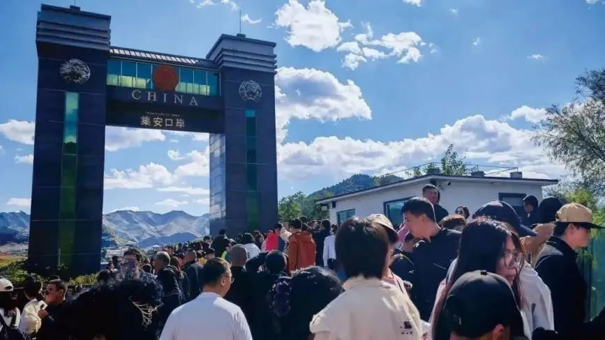 鴨綠江國門景區(qū)人頭攢動(央廣網發(fā) 吉林省文化和旅游廳供圖)