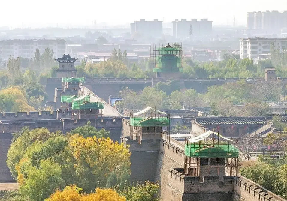 山西平遙古城東城墻展開修繕作業(yè)