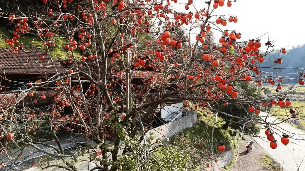 樂安鋪鄉(xiāng)聯(lián)豐村的山林同樣熱鬧非凡,蜿蜒山路旁的槭樹、楓香樹層層疊疊,紅褐與金黃交織成絢爛色塊,與錯(cuò)落分布的農(nóng)家院落相映成趣。隨著初冬的寒意悄然降臨,聯(lián)豐村的柿子樹“燃”起一片熱烈的“紅火”,熟透的柿子,宛如一盞盞喜慶的紅燈籠,將山村裝點(diǎn)得明艷動(dòng)人,在陽(yáng)光輕撫下,橙紅的柿子透著誘人光澤,與遠(yuǎn)處的山林相襯,色彩斑斕。游客們或手持相機(jī),定格“柿”景,歡聲笑語(yǔ)在鄉(xiāng)村回蕩。引得游人紛至沓來,沉醉于這獨(dú)特的田園冬韻之中。