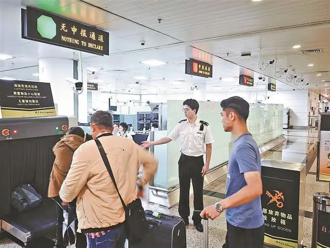 廈門機場海關(guān)關(guān)員對進境旅客開展監(jiān)管作業(yè)。(通訊員 于挺洋 攝)