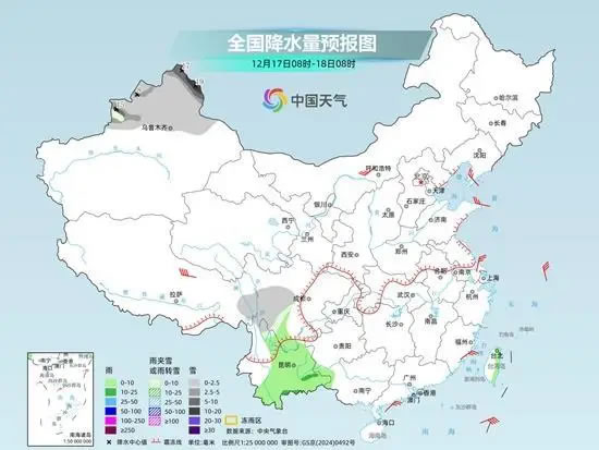 明天,內(nèi)蒙古東北部、黑龍江西北部、新疆北疆北部及南疆山區(qū)、甘肅河西等地部分地區(qū)有小到中雪或雨夾雪,其中,內(nèi)蒙古東北部、新疆沿天山地區(qū)和伊犁河谷等地部分地區(qū)有大到暴雪。云南中南部、廣西西部、廣東東南部、福建東南部、海南島、臺灣島等地部分地區(qū)有小到中雨。