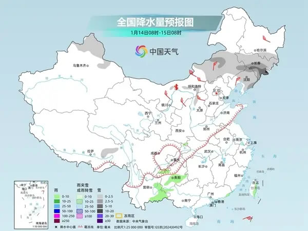 中國天氣網(wǎng)訊 今明兩天(1月14日至15日),全國大部繼續(xù)維持雨雪稀少的格局,后天起降水將呈現(xiàn)增多趨勢。目前,冷空氣實力不強、位置偏北,主要影響東北地區(qū)等地,不過17日起,新一股強冷空氣將給我國大部地區(qū)帶來明顯降溫,屆時也會扭轉(zhuǎn)近期偏暖的格局。