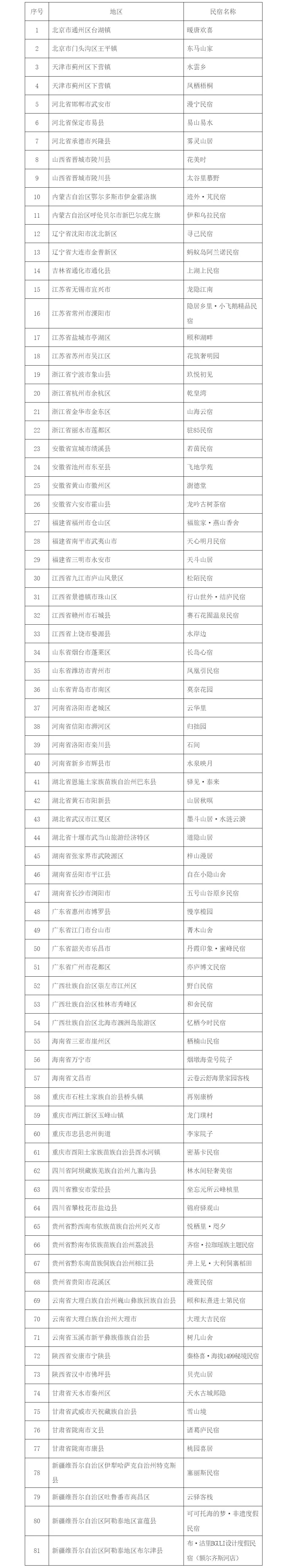 央廣網(wǎng)北京1月27日消息(記者 宋雪)據(jù)文化和旅游部網(wǎng)站消息,根據(jù)《〈旅游民宿基本要求與等級劃分〉(GB/T 41648—2022)實施工作導則》,81家旅游民宿符合全國甲級旅游民宿標準,104家旅游民宿符合全國乙級旅游民宿標準。
