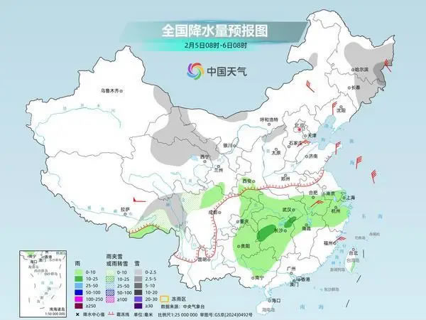 隨著寒潮南下,同時(shí)西南暖濕氣流北上,今明天中東部將出現(xiàn)一輪雨雪天氣過(guò)程。這次過(guò)程影響范圍廣,部分地區(qū)將出現(xiàn)明顯雨雪轉(zhuǎn)換。