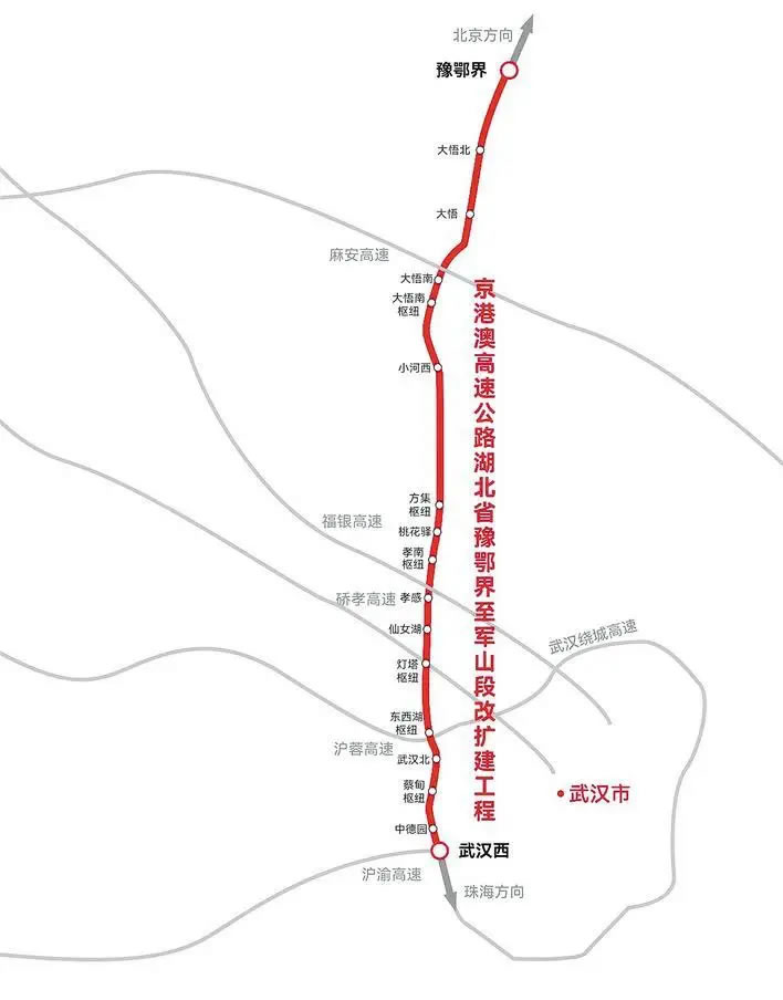 京港澳高速 湖北北段示意圖