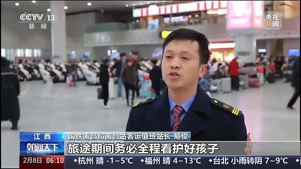 國(guó)鐵南昌局南昌站客運(yùn)值班站長(zhǎng) 易。郝猛酒陂g務(wù)必全程看護(hù)好孩子,切勿讓孩子脫離視線。如需幫助,可聯(lián)系車(chē)站工作人員和民警,謹(jǐn)防孩子走失、接觸陌生人員。
