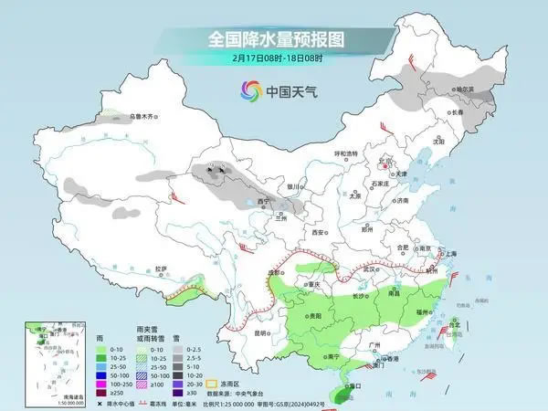 今天是春節(jié)假期第一天,我國降水增多增強,江漢、江南等地部分地區(qū)降雨時還可能伴有強對流天氣,陜西、河南等地或現(xiàn)降雪。同時,寒潮將自北向南影響中東部,不少地方迎換季式降溫,江南西部等局地降溫幅度可超12℃。
