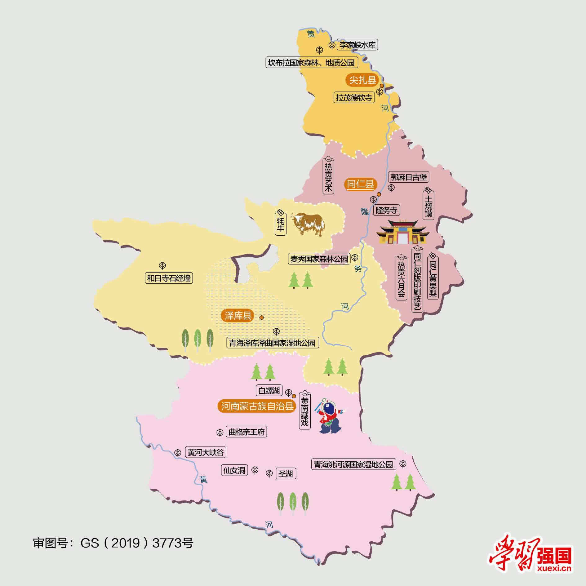黃南藏族自治州轄1個(gè)縣級(jí)市、3個(gè)縣: