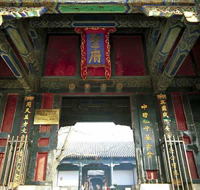 穿過第一進狹長的庭院,便是孔府中路的第二道大門,俗稱二門。門建于明代,門楣高懸明代詩 人、吏部尚書、文淵閣大學士李東陽手書“圣人之門”豎匾,下有閥閱承托,門柱有石鼓夾抱。正門左右各有腋門一座,耳房一間。在封建社會,平時只走腋門,正門不開,以示莊嚴。