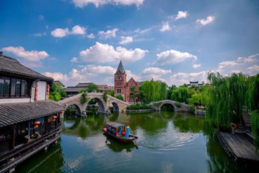 臺(tái)兒莊是一座南北交融、中西合壁最典型的城市。因地處南北過渡帶,運(yùn)河落差大,各路商賈紛紛云集于此,定居經(jīng)商,帶來了不同的文化,使這里成為運(yùn)河文化的典型代表。臺(tái)兒莊匯集了八大建筑風(fēng)格和世界五大宗教,擁有30多座廟宇,形成了三千里運(yùn)河沿線獨(dú)有的南北交融、中西合璧的鮮明文化特征。