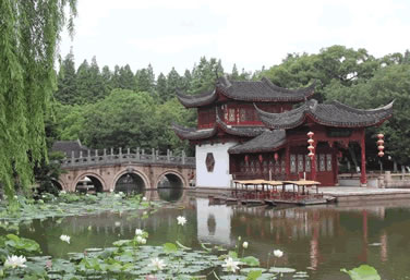 上海大觀園是根據(jù)中國(guó)清代名著《紅樓夢(mèng)》的描寫(xiě)設(shè)計(jì)而成的大型仿古園林。園林建筑群由上海園林院梁友松主持規(guī)劃設(shè)計(jì)。 總體布局以大觀樓為主體,由“省親別墅”石牌坊、石燈籠、沁芳湖、體仁沐德、曲徑通幽、宮門(mén)、“太虛幻境”浮雕照壁、木牌坊等形成全園中軸線。西側(cè)設(shè)置怡紅院、攏翠庵、梨香院、石舫。東側(cè)設(shè)置瀟湘館、蘅蕪院、蓼風(fēng)軒、稻香村等20多組建筑景點(diǎn)。